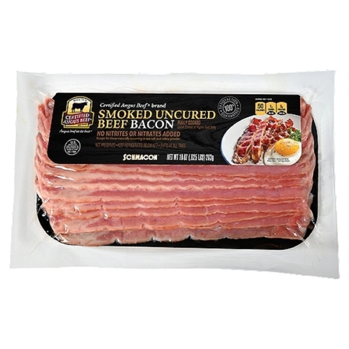 Uncured smoked beef bacon, fully cooked. No added nitrites or nitrates.