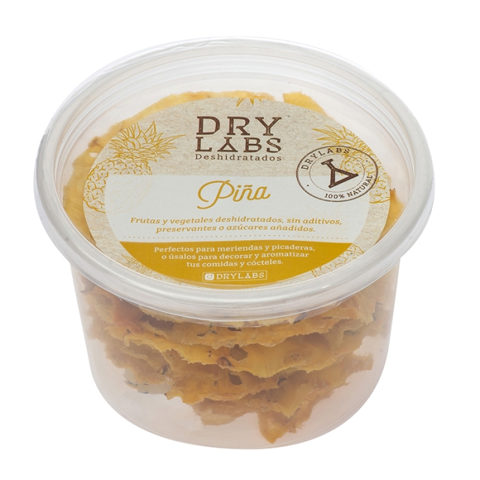 Dehydrated pineapple, without additives, preservatives or added sugars. Perfect for snacks and appetizers, or use them to decorate and flavor your food or cocktails.