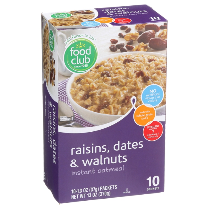 Food Club Instant Oatmeal With Raisins, Dates & Walnuts 10 Units/Pack