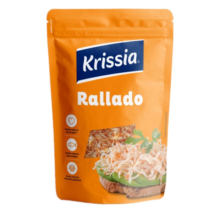 Delicious grated surimi, ideal for giving a special touch to your salads, appetizers, sandwiches or sushi. It is a great natural source of Omega 3 and proteins. It is gluten-free and low in fat.