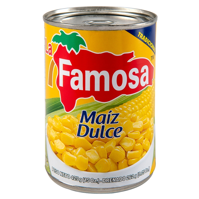 Grown and harvested on our lands using exclusive techniques to produce the most tender, sweet and soft corn kernels. Processed so that they can be consumed from the same can or served in any of the various ways that are preferred. Color, flavor and smell characteristic of the exclusive quality of La Famosa sweet corn.