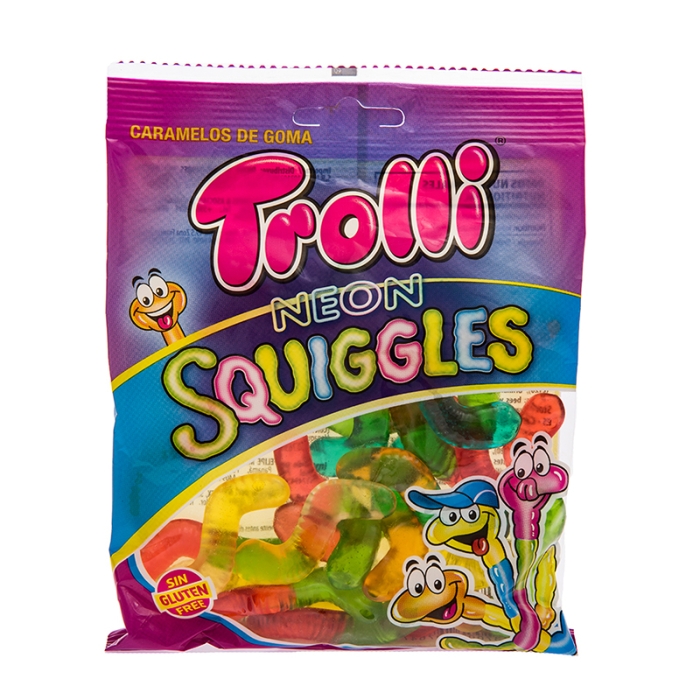 Neon colored gummy candies in the shape of worms.