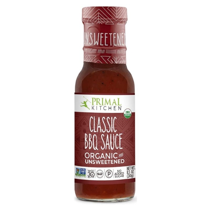 Primal Kitchen® Classic BBQ Sauce is an organic, no-sugar-added sauce ready to add a unique, bold, smoky flavor to your favorite savory dishes. Certified Paleo, Keto, Gluten-Free, and Whole 30 Approved®, this condiment can be used to marinate meats, top burgers, or as a delicious complement to sweet potato fries.