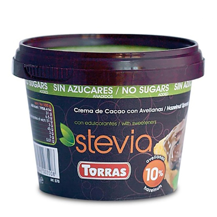 Cocoa and hazelnut cream with sweeteners. Sweetened with Stevia.